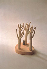 木の彫刻を思わせる「かたち」と、蝋燭の炎のやさしい光が織りなす